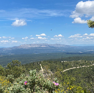 Le Pilon du Roy par le Domaine des Marres à Simiane, déjeuner bucolique à l'ombre des pins, Notre Dame du Rot puis retour au parking de la Pignatelle.